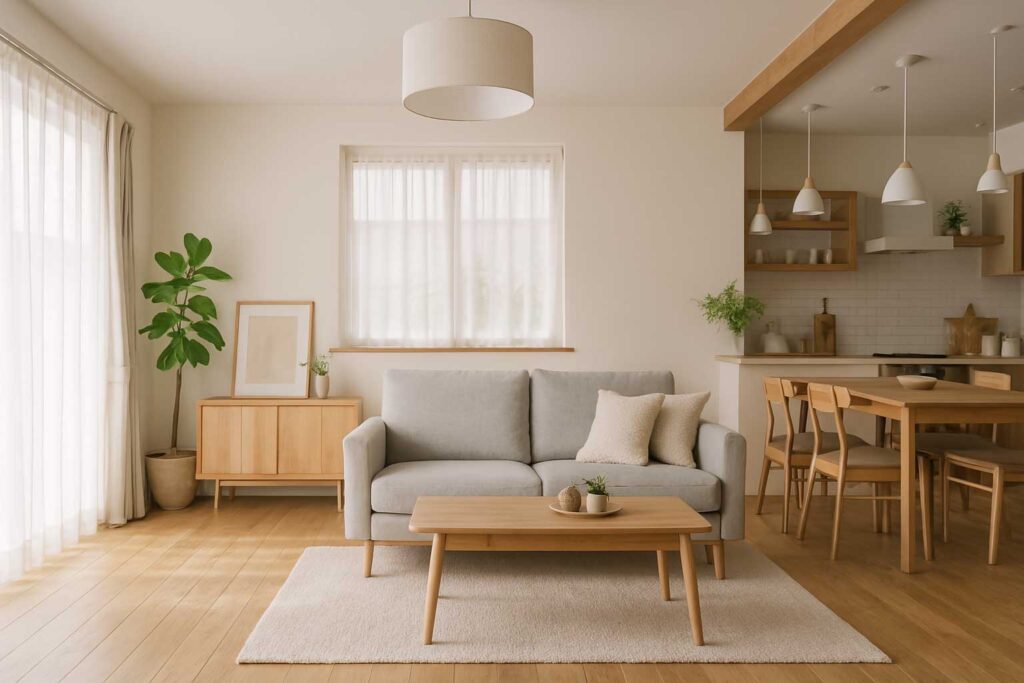 白を基調とした壁や家具とのコントラストが映え、洗練された雰囲気を演出しています。